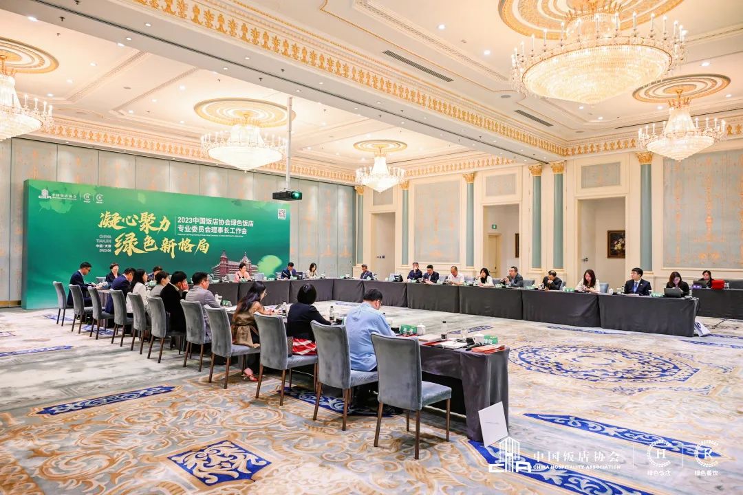 2023年6月5-6日,2023中国饭店协会绿色饭店专业委员会理事长工作会在天津丽思卡尔顿酒店顺利召开。中国饭店协会会长陈新华,资深会长韩明,资深副会长平安稳,副会长丁志刚,中国饭店协会副会长、中国饭店协会绿色饭店专业委员会理事长、天津天房酒店管理有限公司董事长刘军,中国饭店协会副会长、天津宝轩饮食集团有限公司董事长朱宝钧,中国饭店协会副会长、宁波石浦酒店管理发展有限公司总经理李惠飞及来自全国各地的中国饭店协会绿色饭店专业委员会副理事长参加本次会议。会议以“凝心聚力,绿色新格局”为主题,旨在搭建行业绿色发展平台,进一步提升中国饭店协会绿色饭店专业委员会的绿色服务能力,加强专委会成员间的交流合作。